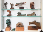 - Vitrine-expo met enkele kleinere werken in de werkplaats van de maker
